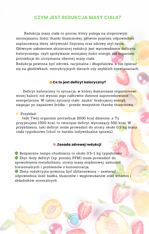 Ten e-book to kompletny, praktyczny przewodnik, dzięki któremu zrozumiesz, jak naprawdę działa redukcja masy ciała i jak jeść zdrowo – bez liczenia każdego kęsa i rezygnowania z przyjemności.